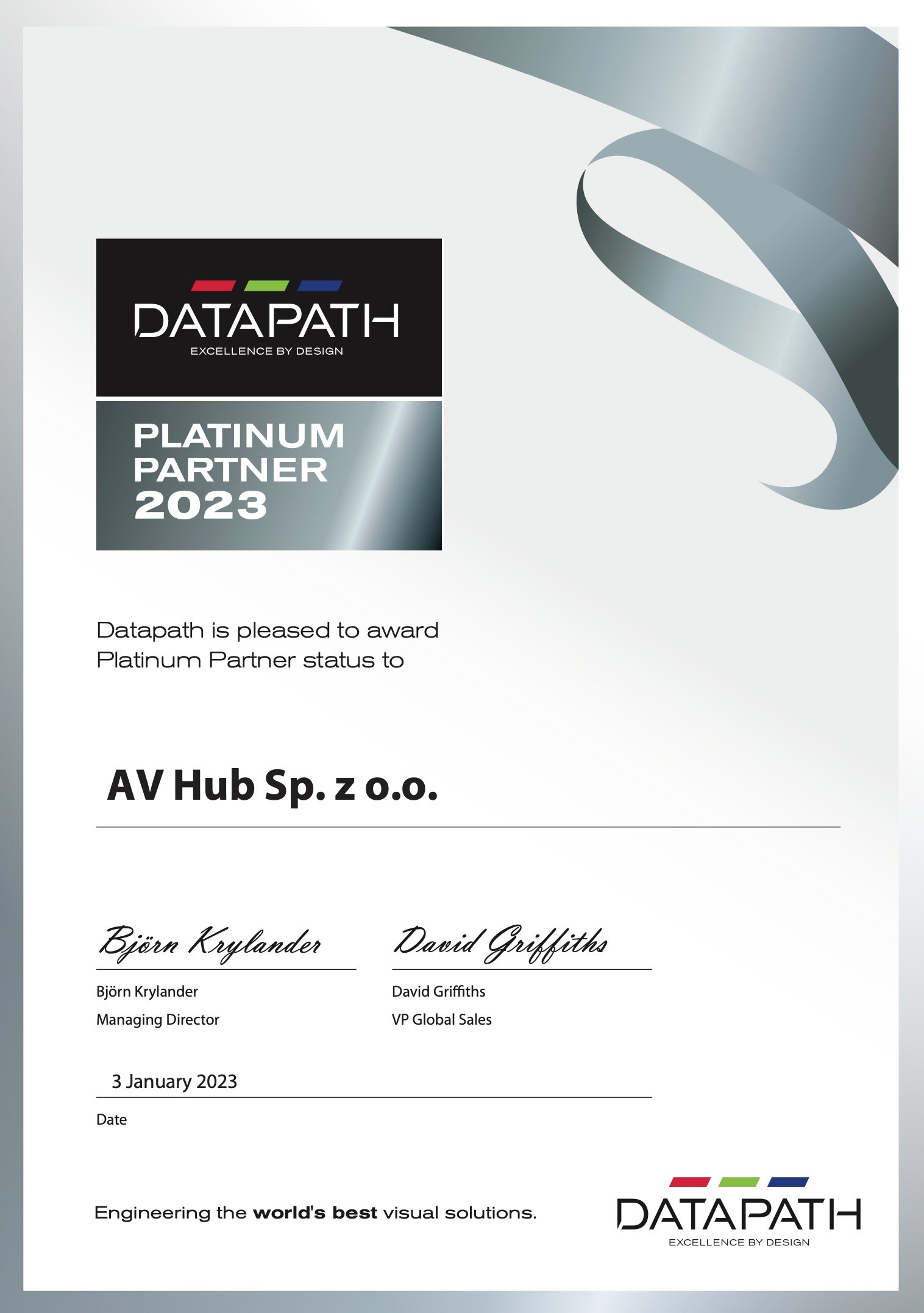 There's no better motivation that recognition, with pride we're announcing that with new year 2023 we were awarded Platinium Partner status and kept our ranks among best partners with Datapath.